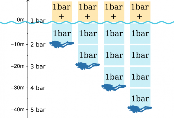| 10 m | 1 bar | 1 bar | 2 bars |