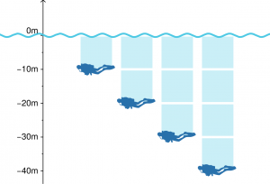 | 40 m | 1 bar | 4 bars | 5 bars |