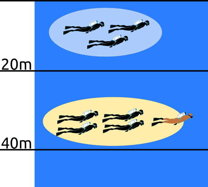 - Au delà de 20m → même équipement qu'un plongeur autonome